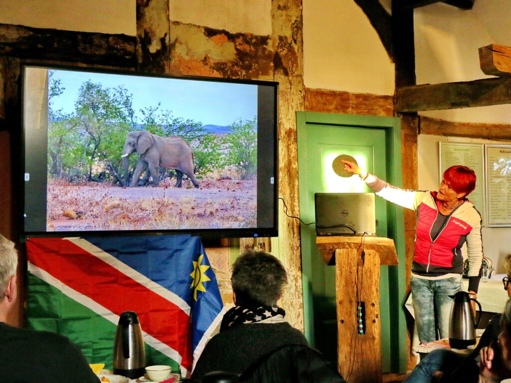 Neben den Wüstenlandschaften berichtete sie auch von wildreichen Nationalparks wie dem Etosha-Nationalpark, wo sie Elefanten, Giraffen und viele weitere Tiere in freier Wildbahn erleben durfte. Ihre Bilder von Gebirgszügen, rauer Küste und dem Zusammentreffen von Wüste und Meer machten die Vielfalt Namibias eindrucksvoll sichtbar.
